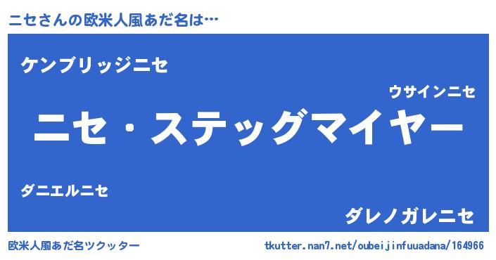 | 女子向けラノベタイトル風あだ名 | 『シンデレラニセ家の靴箱館』『闇のニセ』 |