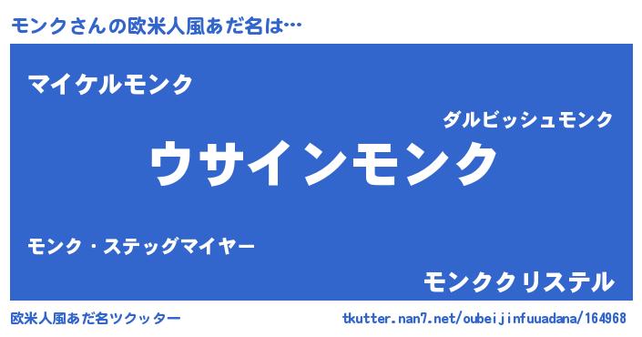 | 胡散臭い通販商品みたいなあだ名 | 『信頼と実績のサプリメント…その名も「モンク」』 |