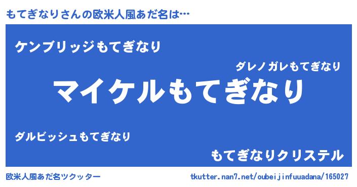 | 男性向けラノベタイトル風あだ名 | 『もてぎなりの憂鬱』 |