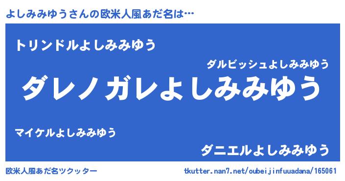 | ヘコむあだ名 | 『よしみみゆう(笑)』『よしっふぃ~』 |