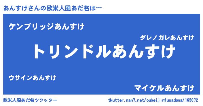 | 男性向けラノベタイトル風あだ名 | 『転生したらあんすけだった件』 |