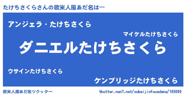 | 男性向けラノベタイトル風あだ名 | 『おまえをオタクにしてやるから、俺をたけちさくらにしてくれ! 』 |