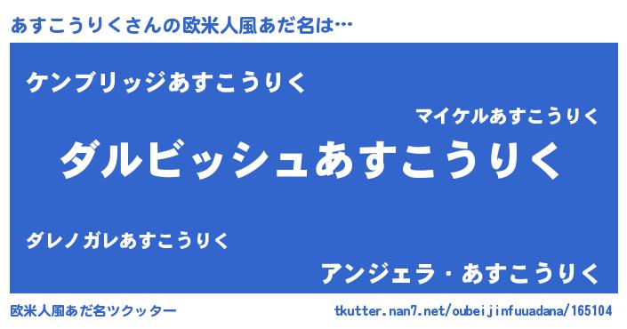 | 意味不明あだ名 | 『永久保存あすこうりく』 |