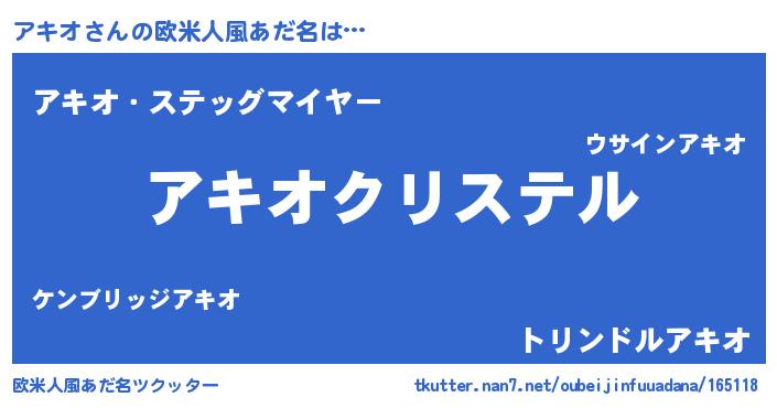 | 男性向けラノベタイトル風あだ名 | 『やはりアキオの青春ラブコメはまちがっている 』 |