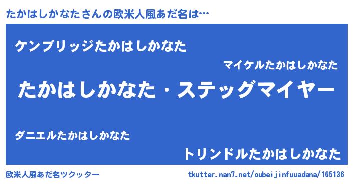 | 料理風あだ名 | 『たかはしかなたの炊き込みご飯』 |