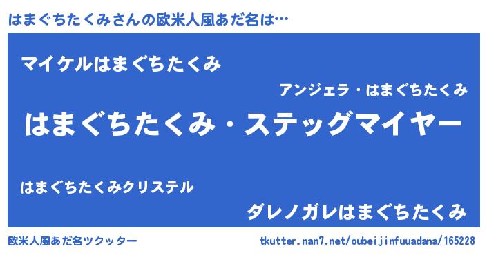 | 男性向けラノベタイトル風あだ名 | 『冴えないはまぐちたくみの育てかた』 |