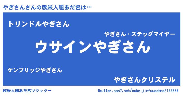 | 男性向けラノベタイトル風あだ名 | 『やぎさんの嫁は女の子じゃないと思った?』 |