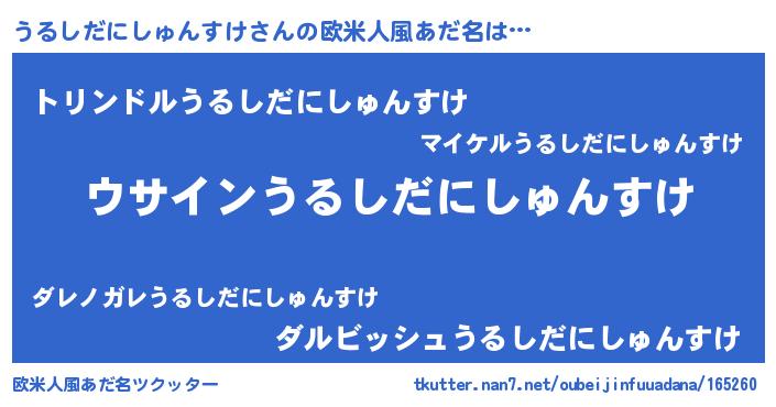 | 男性向けラノベタイトル風あだ名 | 『うるしだにしゅんすけの嫁は女の子じゃないと思った?』 |