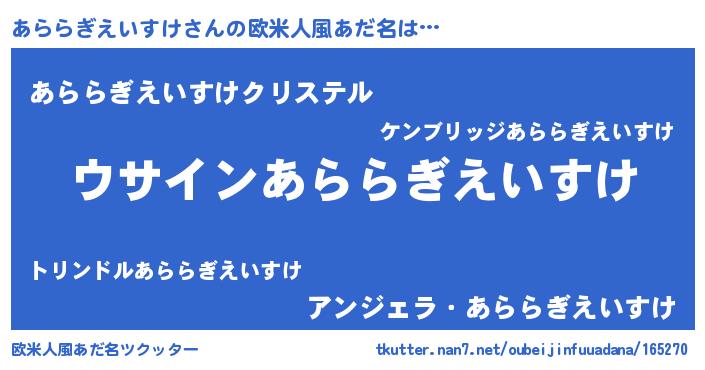 | 女子向けラノベタイトル風あだ名 | 『あららぎえいすけの卵を拾いまして』 |