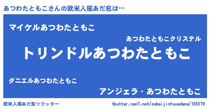 | 男性向けラノベタイトル風あだ名 | 『転生したらあつわたともこだった件』 |