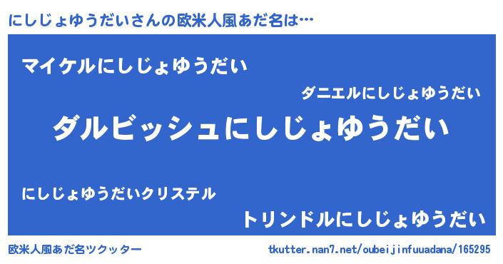 | ヘコむあだ名 | 『にしじょゆうだい(笑)』『にしもー』 |