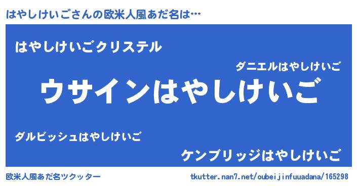 | ポケモン風あだ名 | 『ヒハヤシケイゴ』『ハヤシダネ』 |