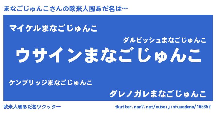 | 女子向けラノベタイトル風あだ名 | 『まなごじゅんこは平凡を望む』 |