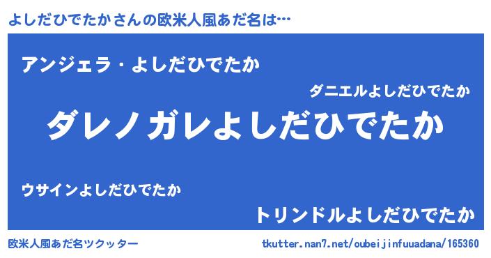 | 男性向けラノベタイトル風あだ名 | 『この素晴らしい世界によしだひでたかを!』 |