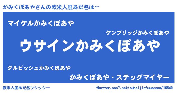 | 男性向けラノベタイトル風あだ名 | 『かみくぼあやの嫁は女の子じゃないと思った?』 |