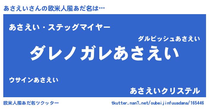 | 意味不明あだ名 | 『住所不定無職あさえい(8歳)』 |