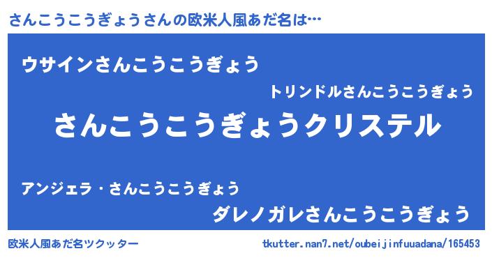 | ポケモン風あだ名 | 『サンコダネ』『ヒサンコウコウギョウ』 |