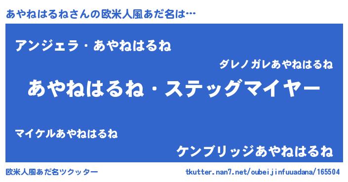 | 意味不明あだ名 | 『自称あやねはるね』 |