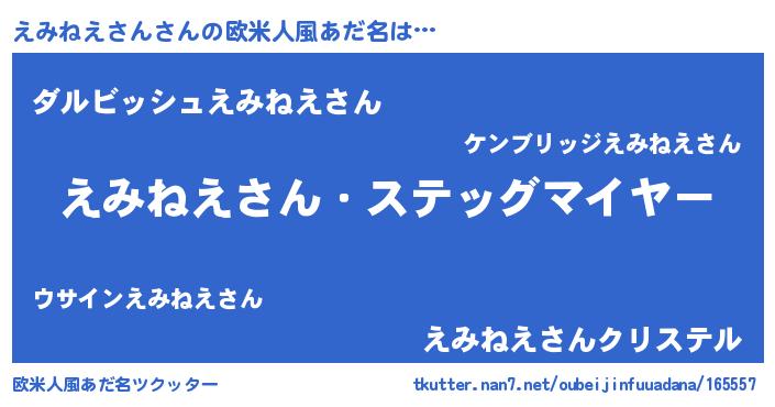 | 意味不明あだ名 | 『永久保存えみねえさん』 |
