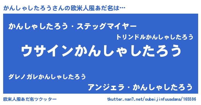 | 男性向けラノベタイトル風あだ名 | 『かんしゃしたろうの嫁は女の子じゃないと思った?』 |