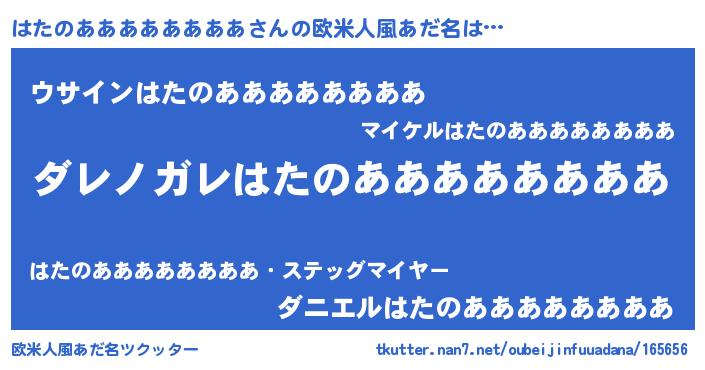 | 男性向けラノベタイトル風あだ名 | 『魔弾の王とはたのああああああああ』 |