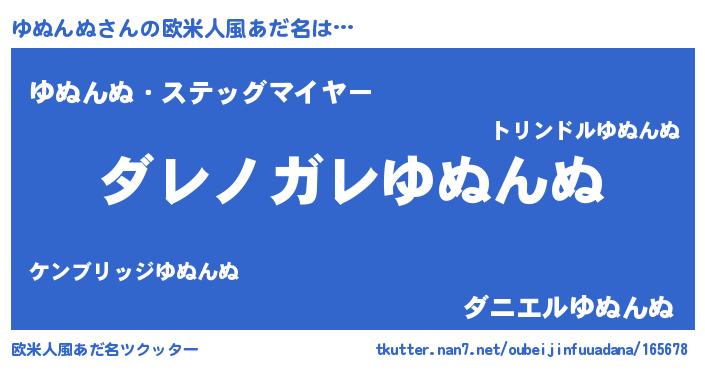 | 女子向けラノベタイトル風あだ名 | 『乙女ゲームの破滅フラグしかない悪役ゆぬんぬに転生してしまった…』 |