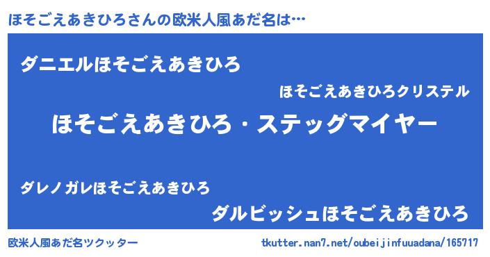 | 男性向けラノベタイトル風あだ名 | 『冴えないほそごえあきひろの育てかた』 |