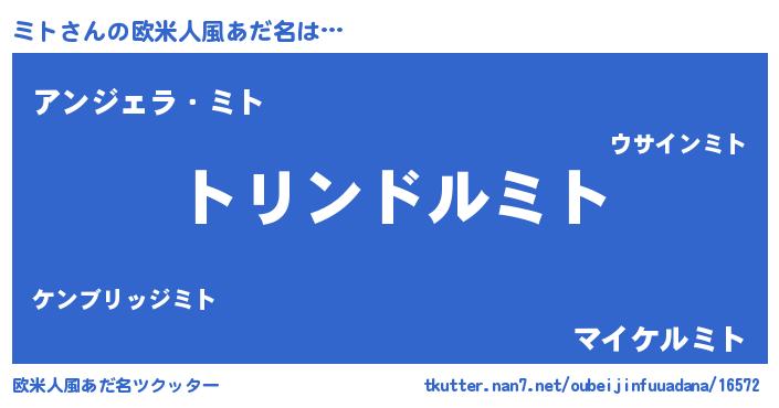 | 女子向けラノベタイトル風あだ名 | 『ミトの玉の輿計画!』 |