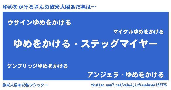 | ポケモン風あだ名 | 『メロユッメ』『ヒユメヲカケル』 |