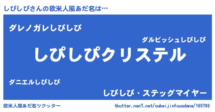 | 男性向けラノベタイトル風あだ名 | 『やはりしぴしぴの青春ラブコメはまちがっている 』 |
