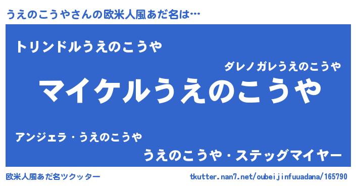 | 胡散臭い通販商品みたいなあだ名 | 『億万長者になれる霊験あらたかなお札…その名も「うえのこうや」』 |