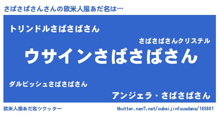 | 男性向けラノベタイトル風あだ名 | 『さばさばさんの嫁は女の子じゃないと思った?』 |