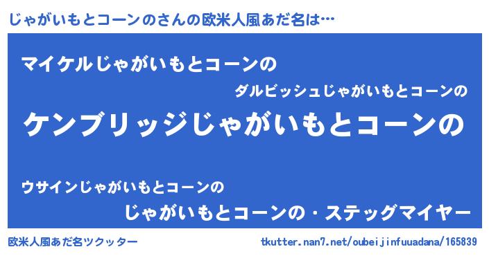| 意味不明あだ名 | 『自称じゃがいもとコーンの』 |
