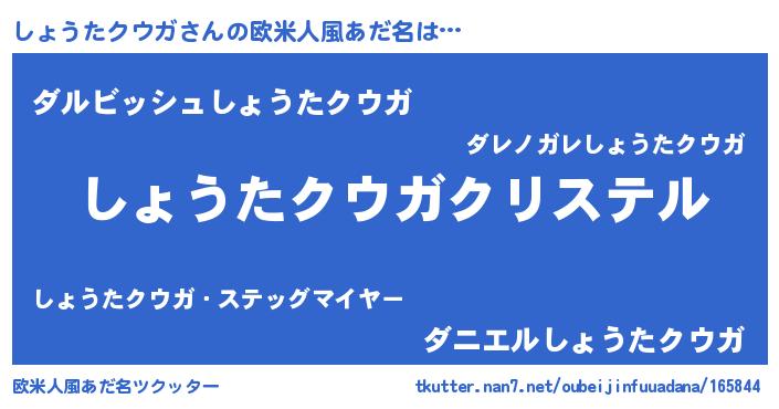 | 女子向けラノベタイトル風あだ名 | 『しょうたクウガ伯爵の花嫁』 |