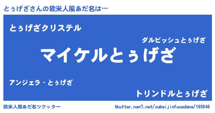 | ポケモン風あだ名 | 『トゥチュウ』『トゥゲダネ』 |