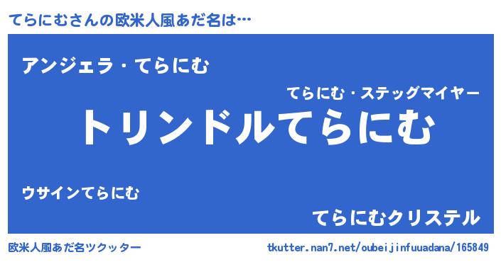 | 意味不明あだ名 | 『ヨモギ科てらにむ属』『自称てらにむ』 |
