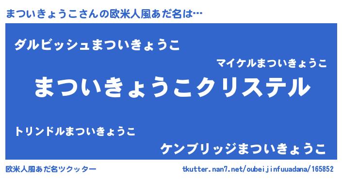| 女子向けラノベタイトル風あだ名 | 『まついきょうこの婚約者』 |