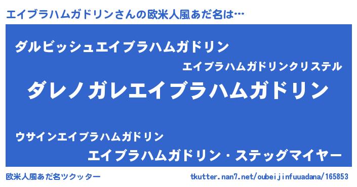 | 伝説のあだ名 | 『聞きしに勝る吟遊詩人エイブラハムガドリン』 |