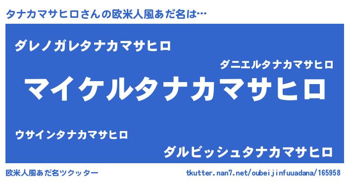 | 男性向けラノベタイトル風あだ名 | 『タナカマサヒロの憂鬱』 |