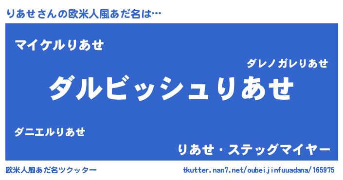 | 女子向けラノベタイトル風あだ名 | 『異世界で失敗しない100のりあせ』 |
