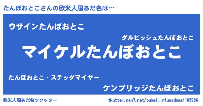 | 男性向けラノベタイトル風あだ名 | 『タンボオトコアートオンライン』 |