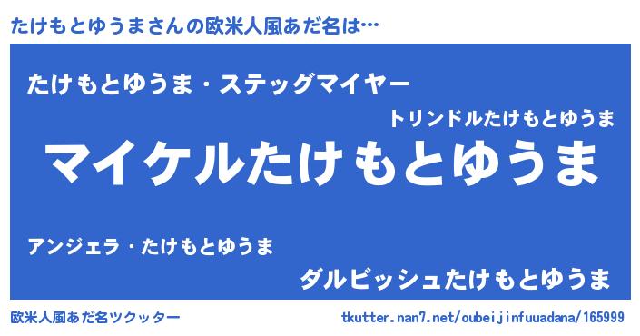 | 男性向けラノベタイトル風あだ名 | 『タケモトユウマアートオンライン』 |