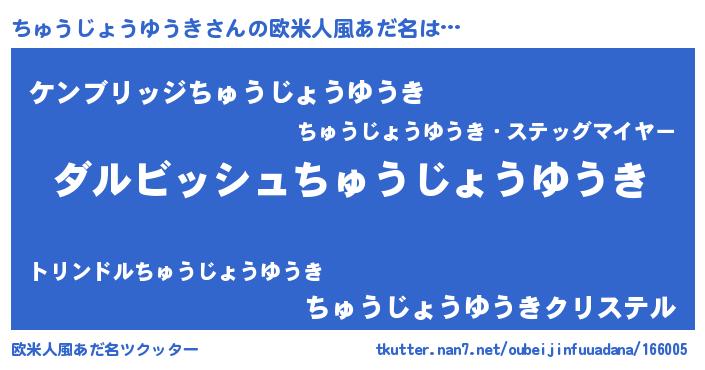 | 意味不明あだ名 | 『永久保存ちゅうじょうゆうき』 |