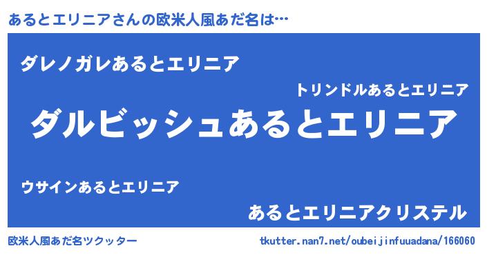 | 胡散臭い通販商品みたいなあだ名 | 『来世でも幸せになれる健康食品…その名も「あるとエリニア」』 |