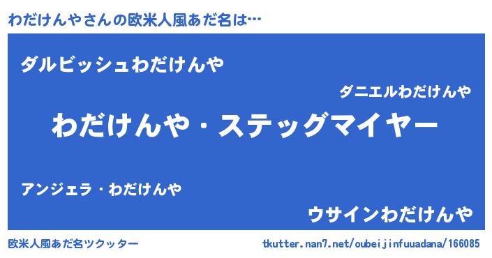 | 男性向けラノベタイトル風あだ名 | 『うちのわだけんやが世界を掌握している!』 |