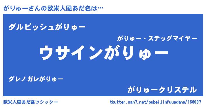 | 女子向けラノベタイトル風あだ名 | 『がりゅーは平凡を望む』 |
