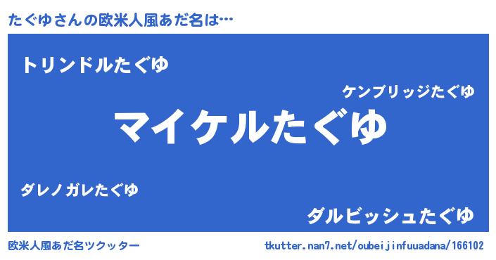 | ヒーロー風カッコイイあだ名 | 『スーパータグユ』『ネオタグユ』 |