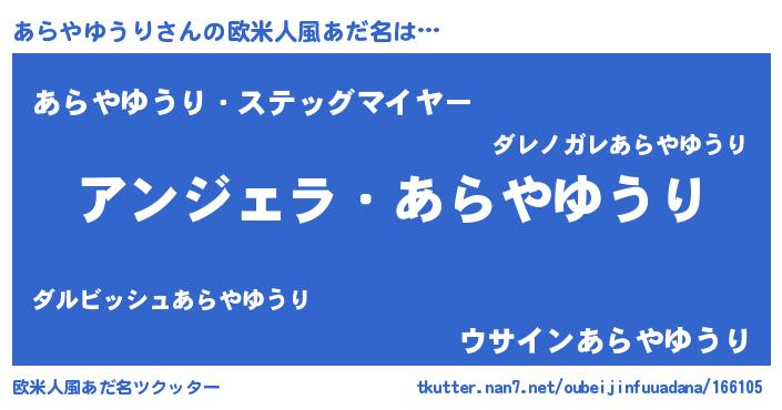 | ヘコむあだ名 | 『あらぷりん』『あらやゆうり(爆)』 |