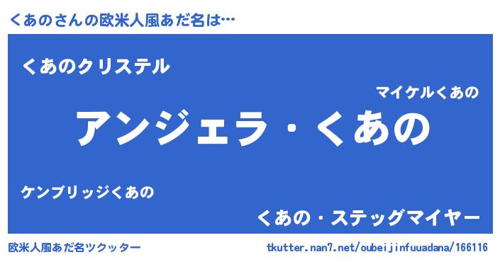 | 男性向けラノベタイトル風あだ名 | 『はたらくくあのさま!』『緋弾のクアノ』 |