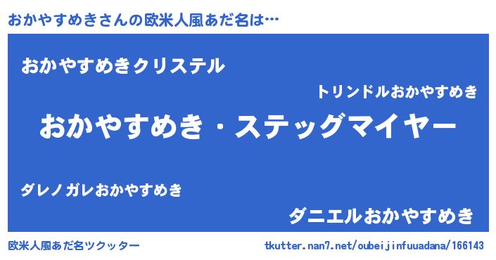 | 意味不明あだ名 | 『おかやすめきフォーエバー』 |